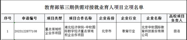 本网讯(通讯员:柯清华)日前,教育部公布了第三期供需对接就业育人项目立项名单,公司“球速体育welcome-中软国际数字经济重点领域校企合作项目”获批立项。