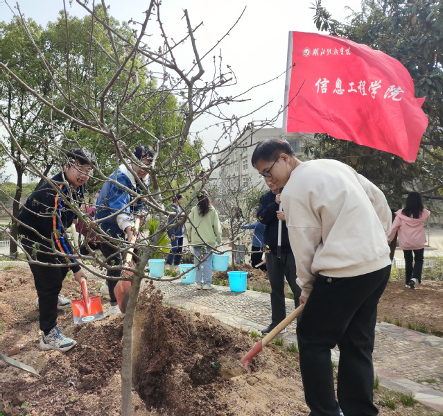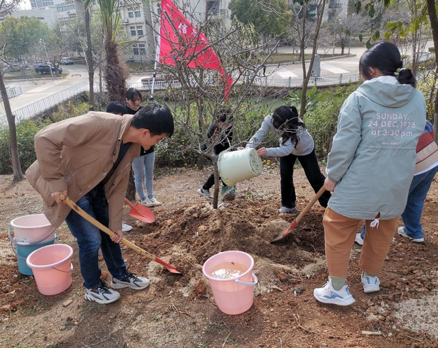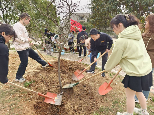 12日上午9点30,在辅导员李国瑞老师的带领下,公司10名员工代表开始了植树活动,积极劳动、学习技能,为建设大美经院贡献力量。