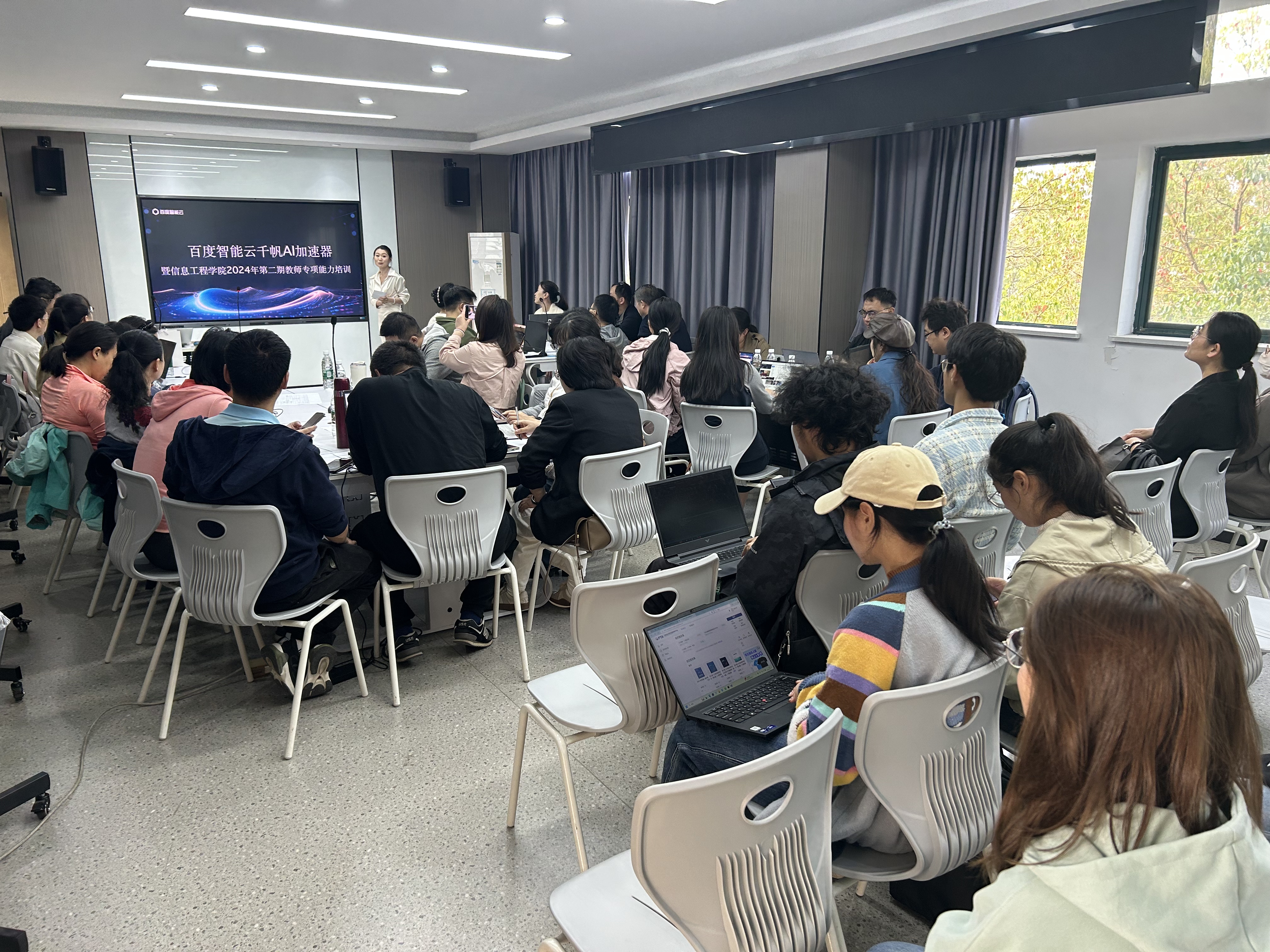 本网讯(通讯员:杜芸)近日,千帆ModelBuilder平台专家受邀在知行楼328为参会老师们带来了一场精彩的授课,内容涵盖了大模型处理技术、架构,以及大模型Agent的原理和项目流程。此次授课不仅为参会者提供了全新的启示和认知,还通过百度与企业的合作应用案例分享,让老师们深入了解大模型在实际应用中的效果与潜力。