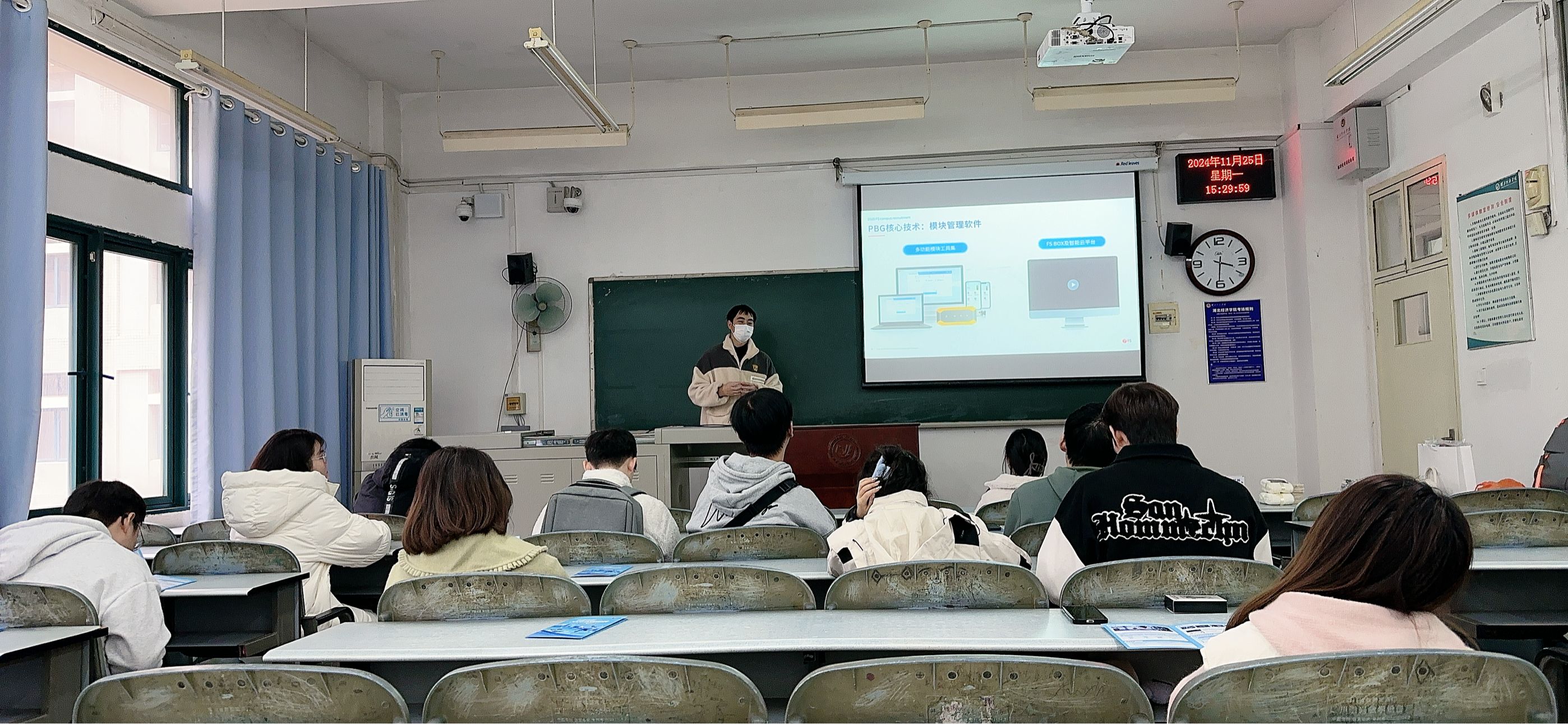 本网讯(通讯员:陈光玉20241125日,深圳市飞速创新技术股份有限公司在一号教学楼204教室举办现场宣讲会。此次宣讲会旨在加强校企合作,搭建员工与企业之间的桥梁,帮助员工们更好地了解行业发展趋势和企业需求,为未来的就业创业做好准备。