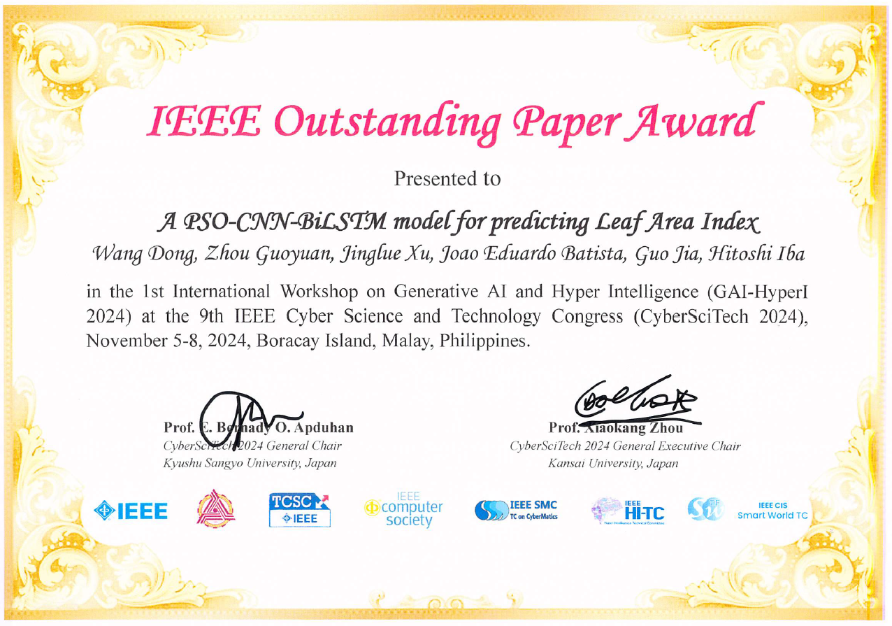 郭佳博士提交的论文A PSO-CNN-BiLSTM model for predicting Leaf Area Index聚焦于人工智能和进化计算,该研究在学术创新性和实际应用价值方面获得了与会专家的一致好评。CyberSciTech是IEEE主办的知名国际学术会议,在网络科学与技术领域具有重要影响力,每年吸引来自全球的学者参与交流。