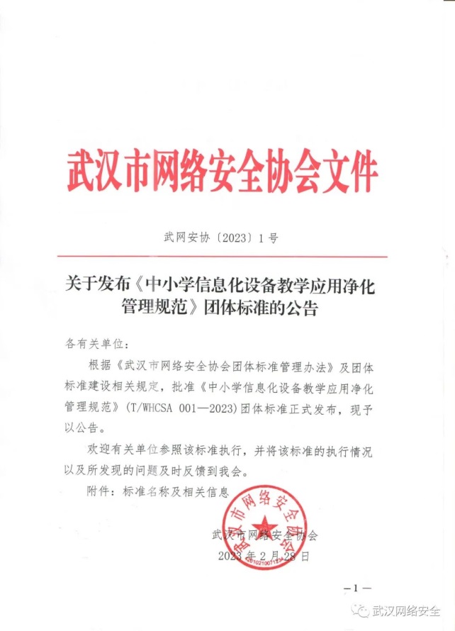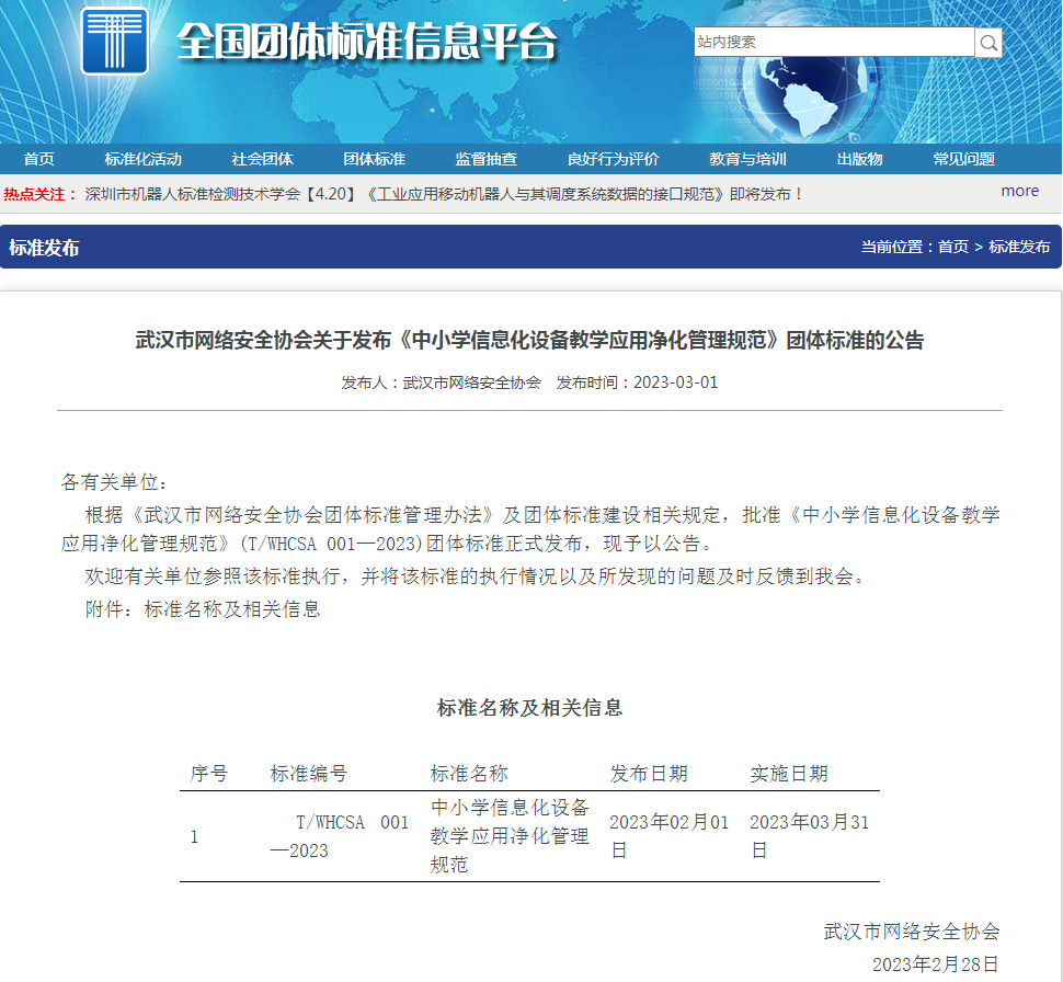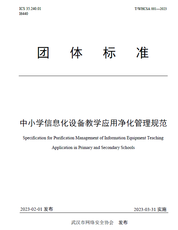 本网讯(通讯员:宋莺)球速体育孙宝林教授主持编制的“中小学信息化设备教学应用净化管理规范”团体标准正式发布。2023年4月1日,在第7届湖北省教育装备展示交流会上,孙教授介绍了“中小学信息化设备教学应用净化管理规范”团体标准的编制背景、主要内容、解决的问题和运行机制等,武汉市网络安全协会秘书长刘悦恒先生宣读了武汉市网络安全协会关于团体标准公布的文件。