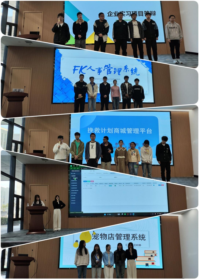 经过二十天的努力,员工们在2024年11月8日分组展示了实训成果。每组员工通过答辩展示了系统开发的完整过程和最终成果,得到了项目经理的一致肯定。许老师特别表扬了员工们的专业能力和团队合作精神,并勉励大家在未来继续发扬吃苦耐劳的品质,将理论与实践相结合,不断提升自身的职业竞争力。