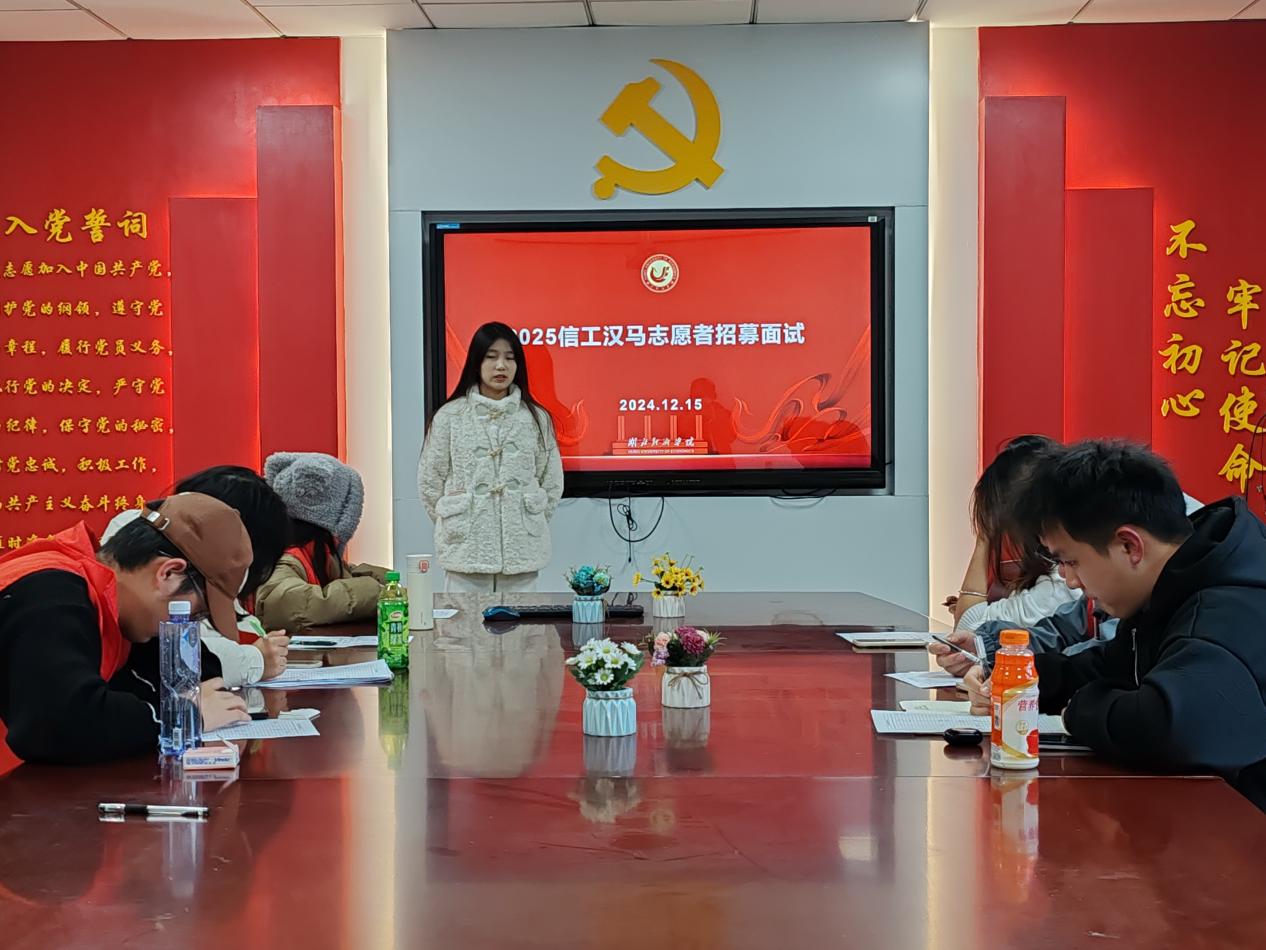 本网讯(通讯员:陈聪颖 江爽)作为志愿者招募合作高校,为积极响应汉马官方号召,公司青年志愿者协会根据公司要求于2024年12月12日至12月15日开展了汉马志愿者招募的笔试和面试工作。