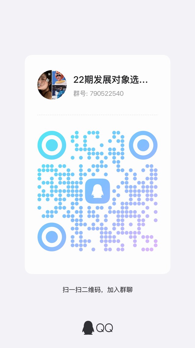 (一)请符合基本条件的入党积极分子扫描下方二维码加入“22期发展对象选拔通知群”,后续的全部通知以群消息为主。