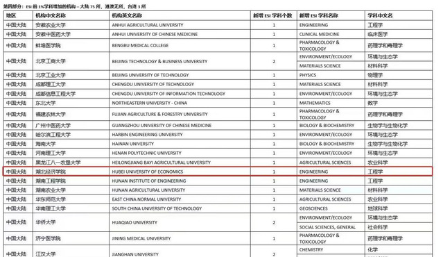 全球共有8409家科研机构上榜,中国大陆共418所高校有学科进入全球前1%,其中新增9所,无退出。新增高校为西南民族大学、上海纽约大学、江苏海洋大学、宁波工程公司、天津大学—新加坡国立大学福州联合公司、陕西中医药大学、湖南工程公司、球速体育welcome、山东工商公司。