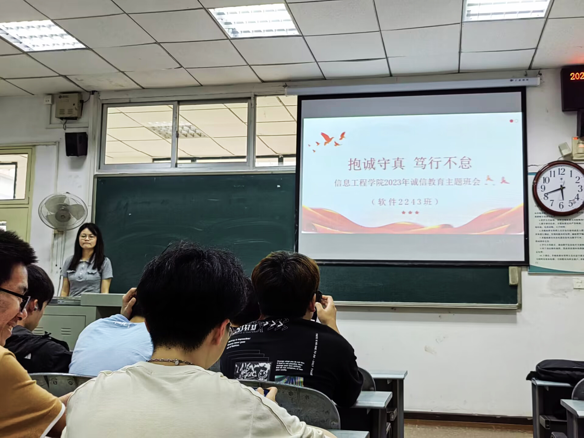通过专题故事分享会,用身边事感染身边人,进一步强化同学们怀感恩之心,立诚信之志,树诚信之身;通过观看2022年“诚信之星”宣传视频,同学们从榜样身上学会诚信之本,立德修身;防诈骗宣传的有效开展,切实增强同学们的诚信意识和金融安全防范意识;通过签诚信考试承诺书、重温相关规章制度等,同学们纷纷承诺诚信应考,遵守考试规章制度,共建良好考试氛围。