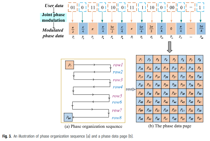 研究针对相位全息数据存储系统中由符号间干扰导致的数据可靠性下降问题,提出一种联合相位调制编码方案。该方案创新性地在同一相位页中融合二阶四阶相位编码,采用交织调制策略:纠错码字中的奇数位使用四阶相位调制,偶数位使用二阶相位调制。通过这种交叉相位融合架构,有效降低了相位误差率、误码率及纠错码延迟,在保持高存储密度的同时显著提升了数据读取可靠性,为全息存储系统的抗干扰设计提供了新思路。(撰写:于勤 审核:李睿恒)