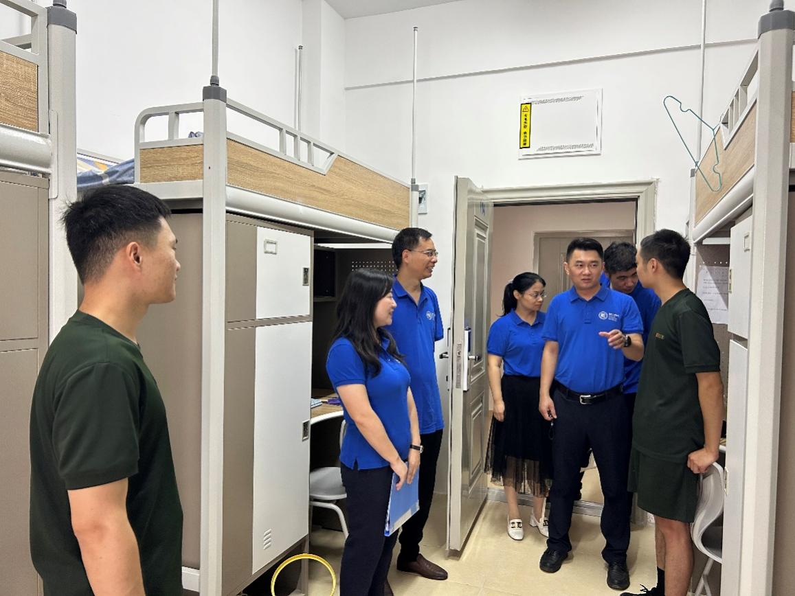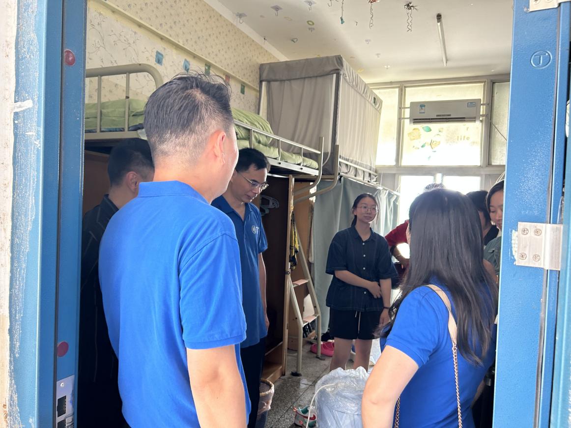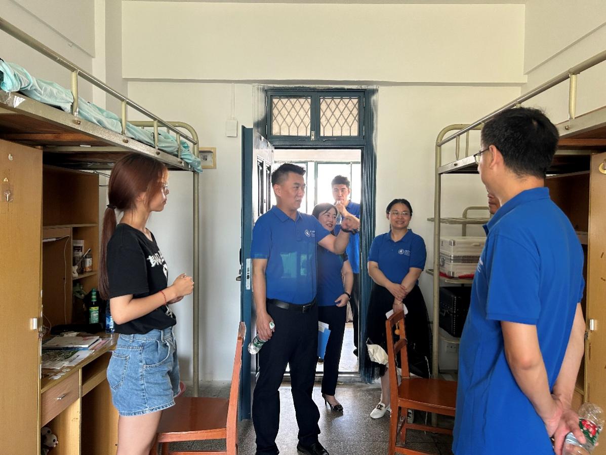 (通讯员李心怡 鲁琪)为深入了解2023级新生宿舍生活情况,帮助同学们更好地适应老员工活。9月9日新生报到第一天上午,公司经理田浩、党委书记李刚、党委副书记陈珊珊、副经理李红艳、副经理吕植成、和辅导员李心怡一行前往枫五、桔四员工公寓走访慰问2023级新生。