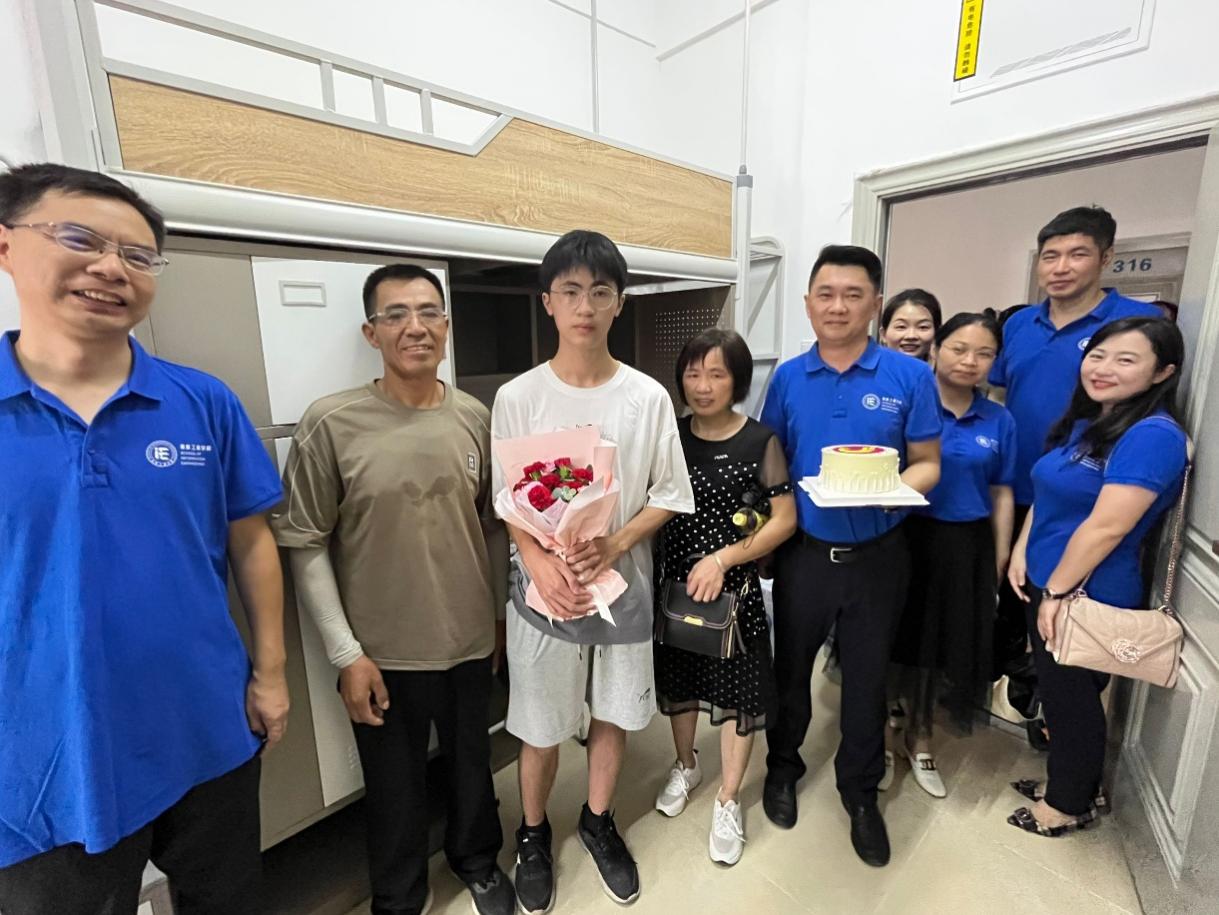 “家是哪里的?”“对公司还适应吗?”“宿舍环境觉得怎么样?”“来了之后有没有碰到什么困难?”在宿舍里,院领导们就员工们的住宿环境、宿舍安全、饮食习惯和生活方面的各种情况对新生及新生家长进行了询问。9月9日当天恰逢计科2341班吴锐铭同学的生日,田浩、李刚为他送上经院订制生日蛋糕和花束,并祝福他学有所成、未来可期。