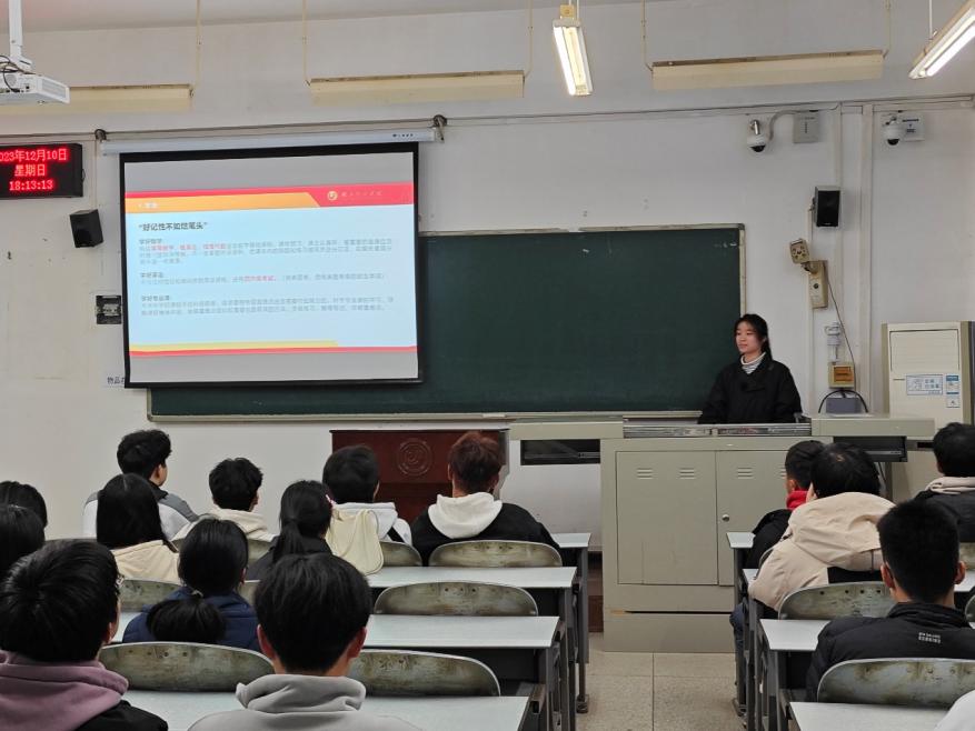 汤雨菲分享的主题是“调整学习心态:如何保持积极的学习心态”。她认为明确学习目标、培养学习兴趣、保持积极心态、寻求帮助和支持、定期休息和放松以及奖励自己等都是保持积极学习态度的关键。此外,她还与学弟学妹们进行了互动,回答了他们关于学习心态和学习方法的问题。