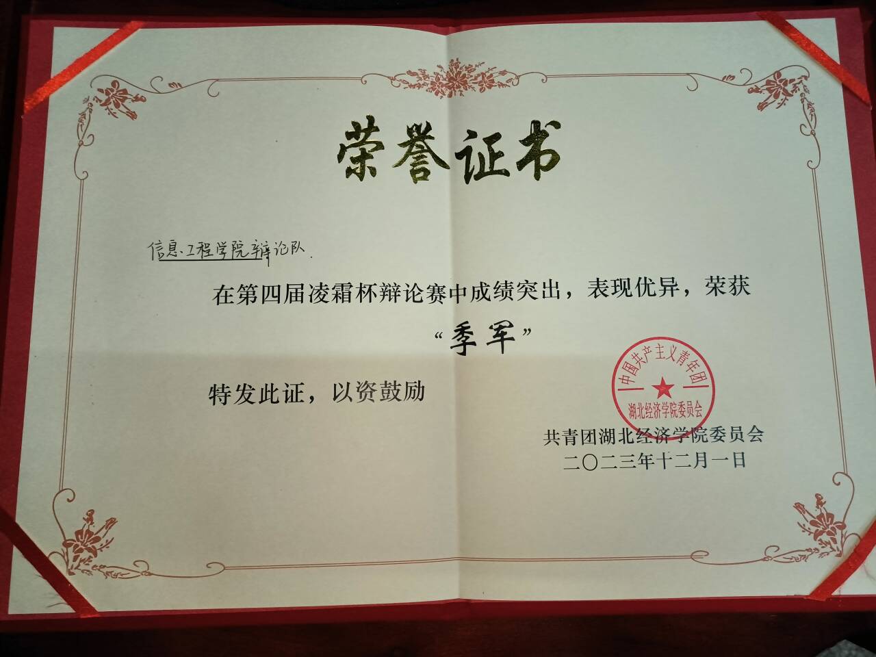 本网讯(通讯员:鲁琪 吴梦成 李科贤)12月10日,公司第四届“凌霜杯”辩论赛结束,公司斩获季军佳绩,两名辩手分别在比赛中获得“最佳辩手”称号。该赛事由校团委、校员工会主办,赛程共持续五周,分为初赛、复赛、半决赛、决赛,各院辩论队均积极参与。