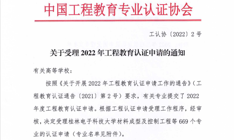 本网讯(通讯员 刘鹏远、柯清华)1月27日,在中国工程教育专业认证协会发布的《关于受理2022年工程教育认证申请的通知》中,公司软件工程专业的工程教育专业认证申请被正式受理。经过三年努力,公司工程教育认证工作取得重要进展。