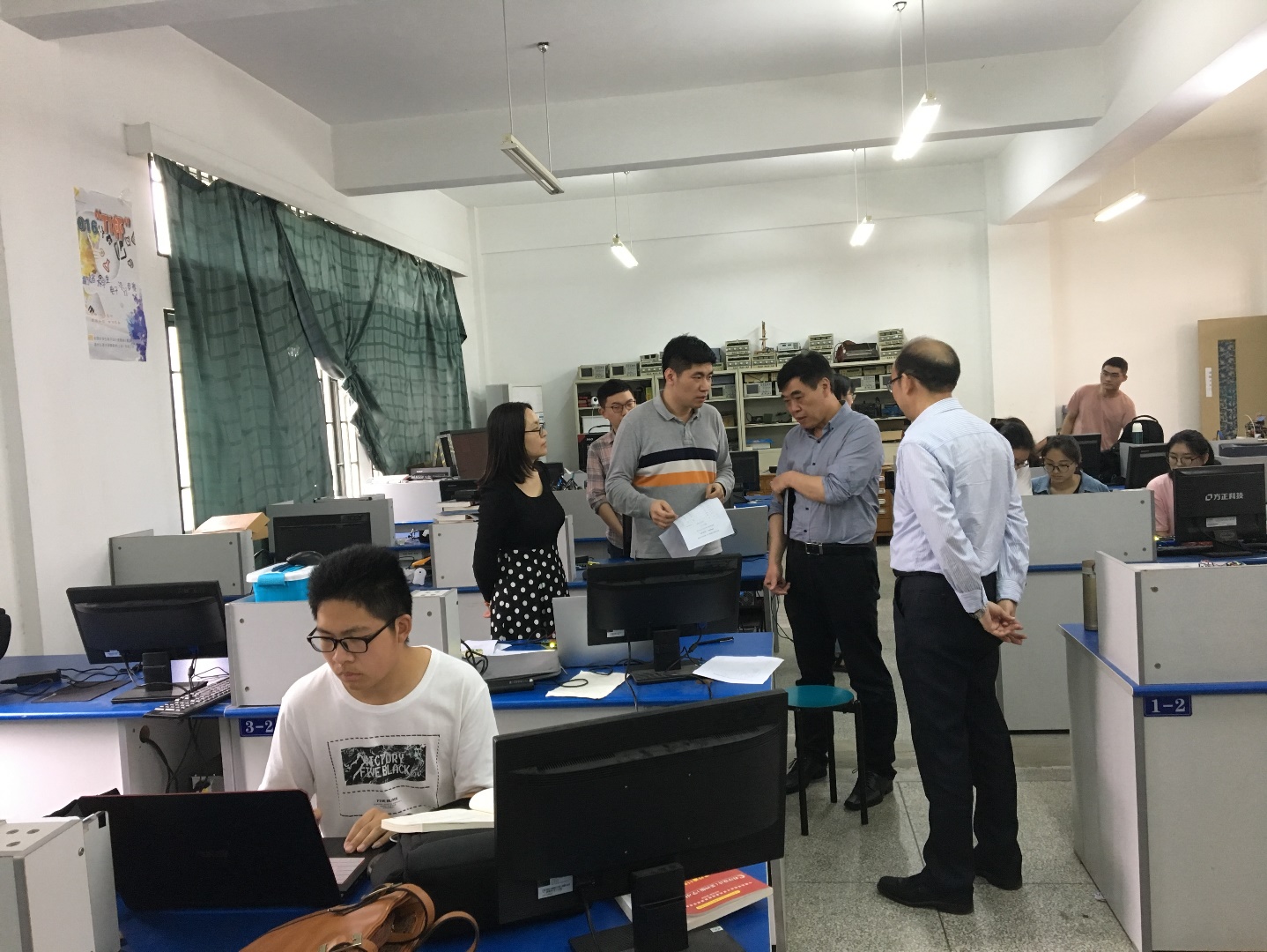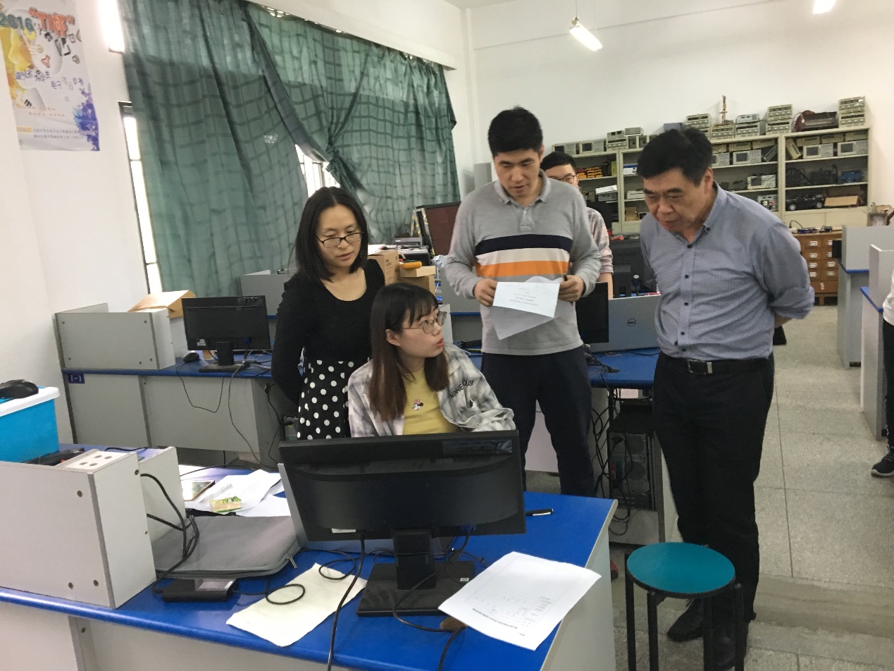 董仕节董事长、何慧刚副董事长、教务处陶前功处长一行亲临答辩现场,饶有兴致的详细了解和参与了电子系毕业实习答辩的全过程,并对毕业实习答辩和毕业作品验收过程进行了仔细的了解和询问,和员工进行了深入的交谈,询问了具体的实习时间、地点、内容、收获以及对公司毕业实习环节的意见和建议。 校领导一行接着观看了部分电子系部分毕业设计作品的演示,并鼓励在场同学提高动手能力,将大学所学运用到以后的工作中取得更大成绩。 何董事长随后对参加答辩的老师表示了慰问,并指出毕业实习答辩以及毕业作品验收是实践教学过程中的重要环节。同时,答辩组老师汇报了一系列关于加强实践教学,提高员工学习兴趣,增强员工动手能力的办法和措施。包括在大二时进行导师和员工双向选择,提升和落实导师指导效果;通过电子DIY大赛、科研立项、老员工创新创业训练计划、学科竞赛、暑期企业实践等一系列阶梯式实践训练提升员工动手能力;建立开放创新实验室,为员工提供实践学习和提升实践能力的场所和器材。听取汇报后,董董事长对这些措施表示肯定,并敦促要对好的实践活动,进行场地、人员、经费保障,切实将这些活动举办好、落实好,提升员工学习兴趣,提高员工动手能力,将员工从“电子游戏”中吸引回来,通过鼓励教师将这些好的活动形成教研项目,积极培育教学成果,并申报。