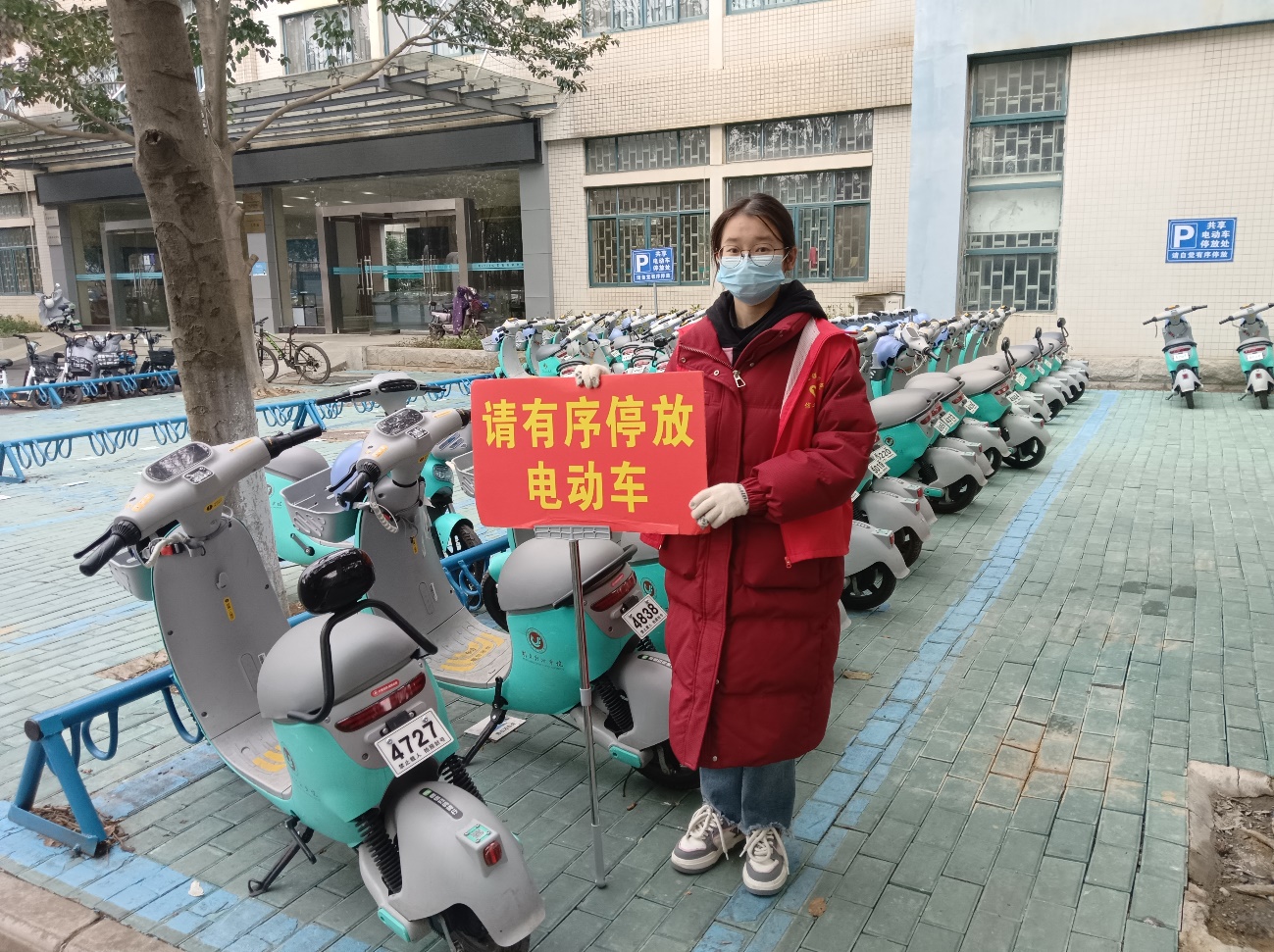 志愿者们积极参与,协助整理,引导同学们规范停车。同学们积极配合引导,共同维护着校园秩序。此次活动让实验楼的电动车停发更加有序,确保了校园交通安全。经过为期十天的秩序维护,同学们规范摆放电动车的意识逐步提升,展现了良好的文明风貌。